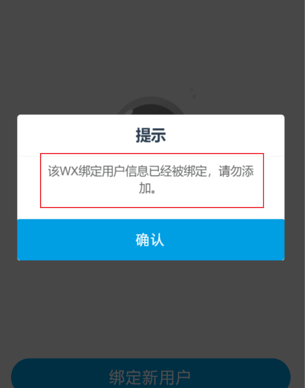 一個(gè)易云維賬號(hào),只能被一個(gè)微信號(hào)綁定 若要綁定的賬號(hào),已經(jīng)被其他微信號(hào)綁定綁定則會(huì)失敗。 |