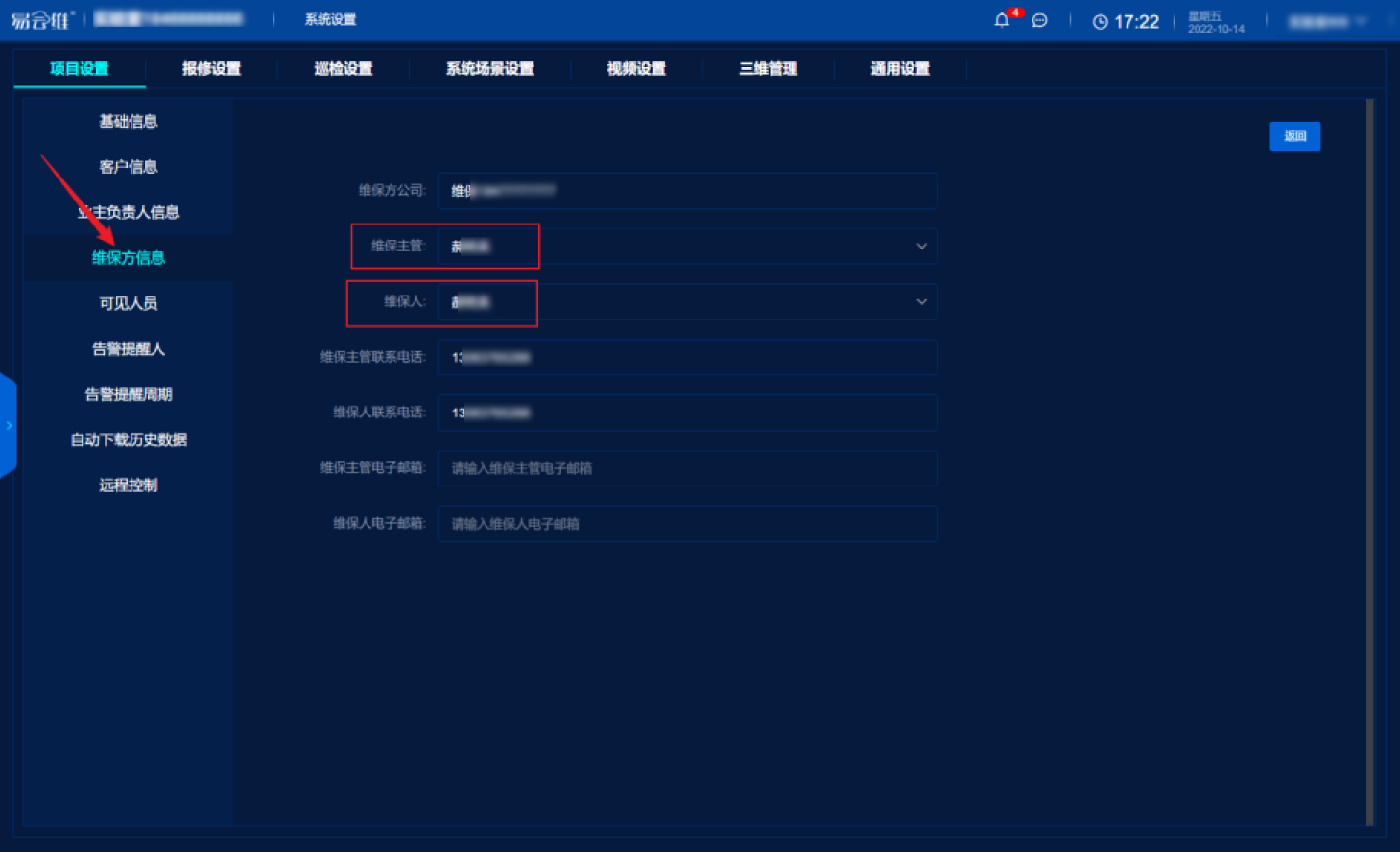 故障推送,接收人是否已設(shè)為項(xiàng)目維保主管/維保人